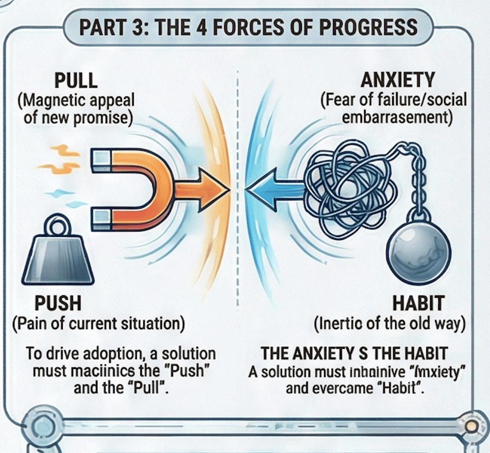 The hard truth: You can have the biggest "Pull" in the world, but if you don't actively dismantle their anxiety and habit on your landing page, the customer will do nothing.